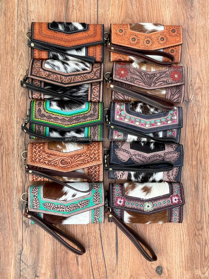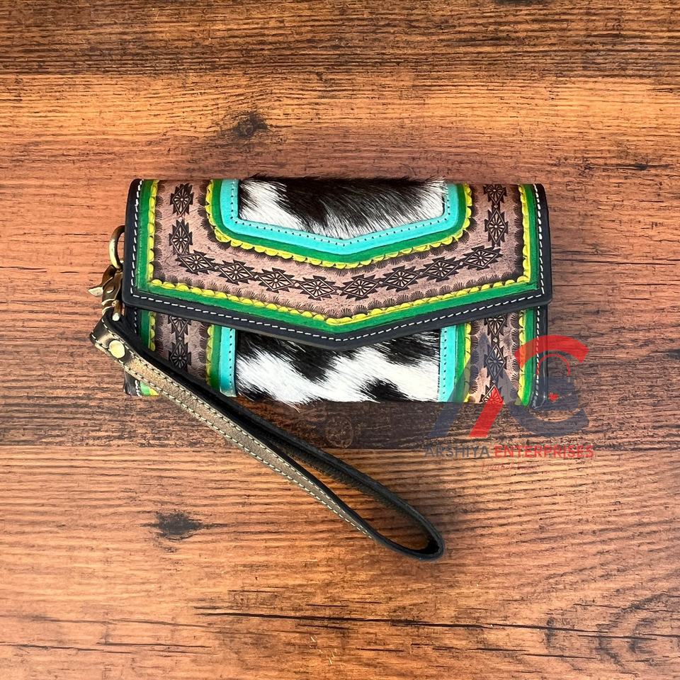 กระเป๋าคลัทช์หนังวัวแบบตะวันตกทำด้วยมือกระเป๋าสตางค์แบบคล้องข้อมือดีไซน์ชนเผ่ามีสไตล์สำหรับผู้หญิงกระเป๋าสตางค์ที่สมบูรณ์แบบใช้งานได้หลากหลาย