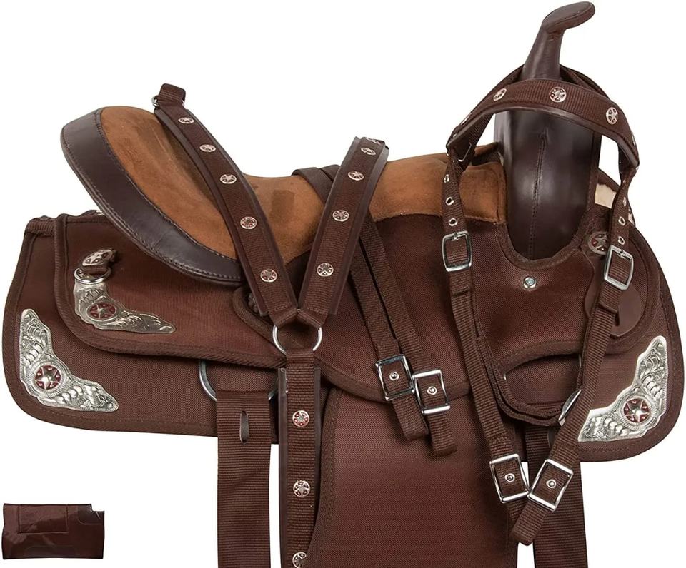 อานม้าหนังแท้แบบตะวันตก ทำมือ ทนทาน ปรับแต่งได้สำหรับการขี่โรดีโอและขี่ทางไกล มีหลายขนาดและหลายแบบให้เลือก