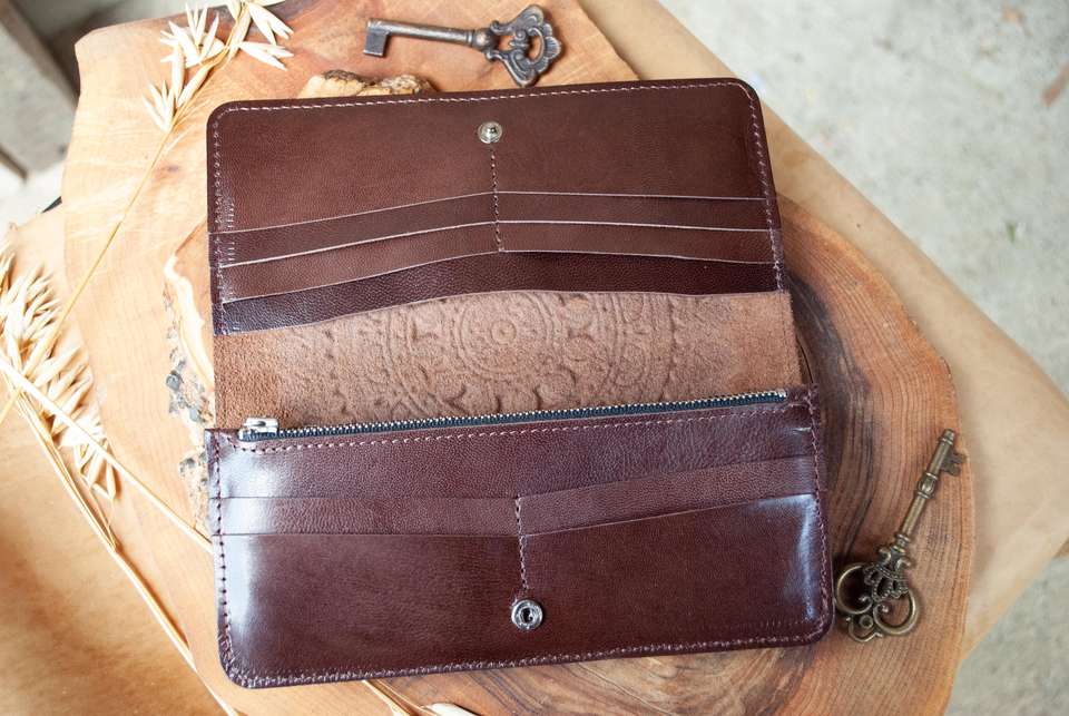 กระเป๋าสตางค์100% หนังแท้สำหรับผู้หญิง, ทำด้วยมือคุณภาพสูงแบบตะวันตกกันน้ำพกพาได้จุของได้มาก