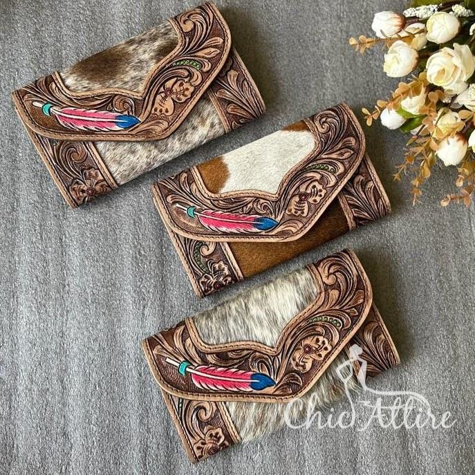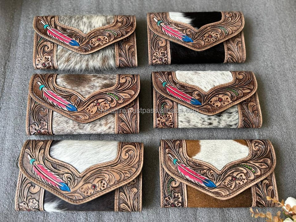 กระเป๋าคลัทช์ขนหนังวัวแบบโบราณใส่มือสไตล์วินเทจทำด้วยมือสไตล์ตะวันตกพร้อมช่องใส่เงินบัตร