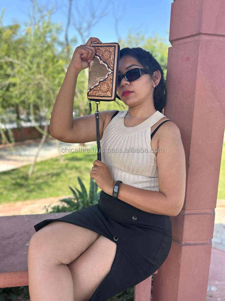 Product name:Real Tooled Cowhide Leather Women's Wristlet Wallet