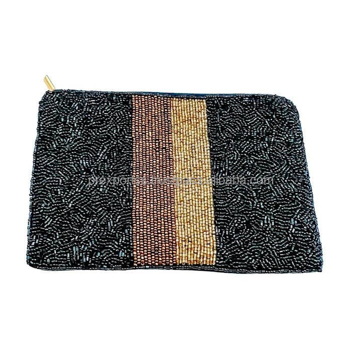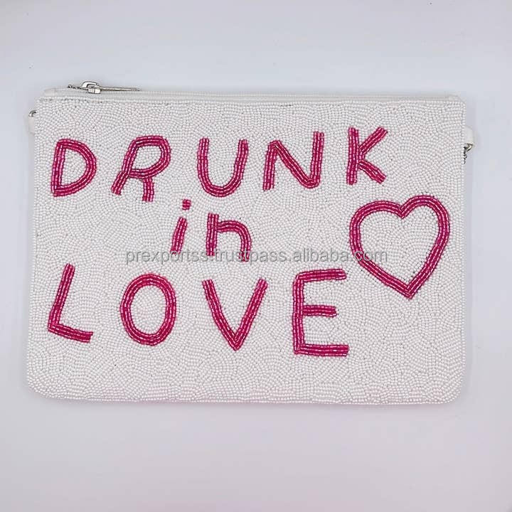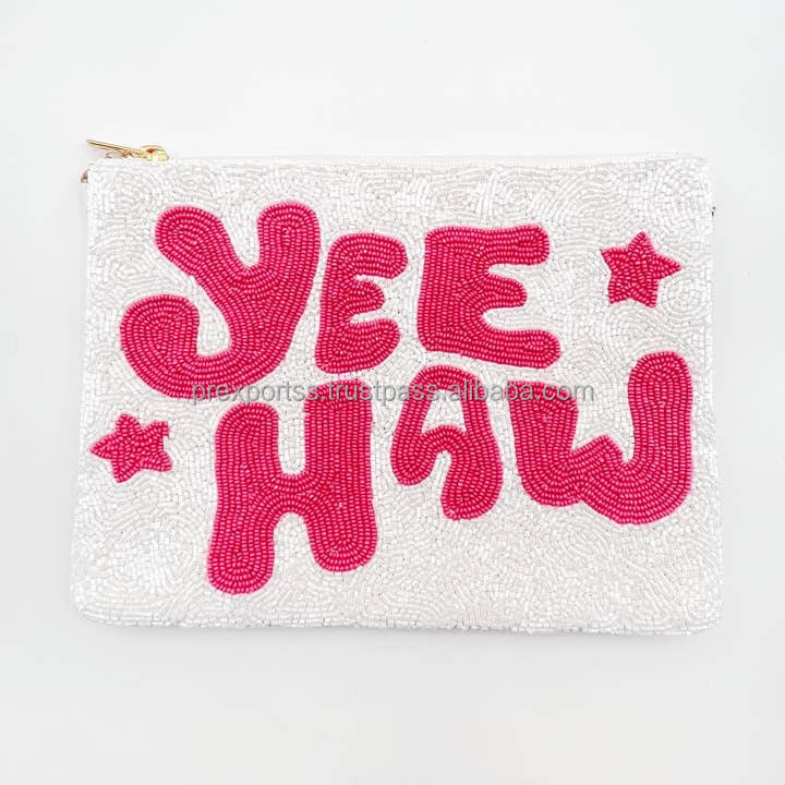Handmade Soft White Beaded Clutch Bag for Yee Haw Letters Western Star Design Zipper Custom Bead Pouch Unisex Evening Parties