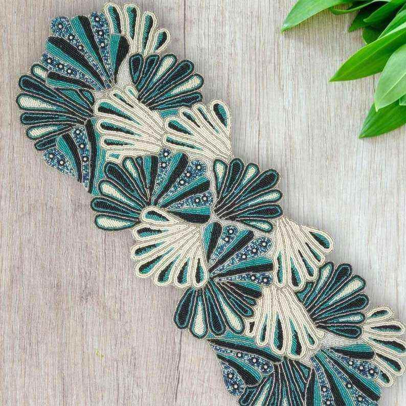Handmade jacquard beaded table runner