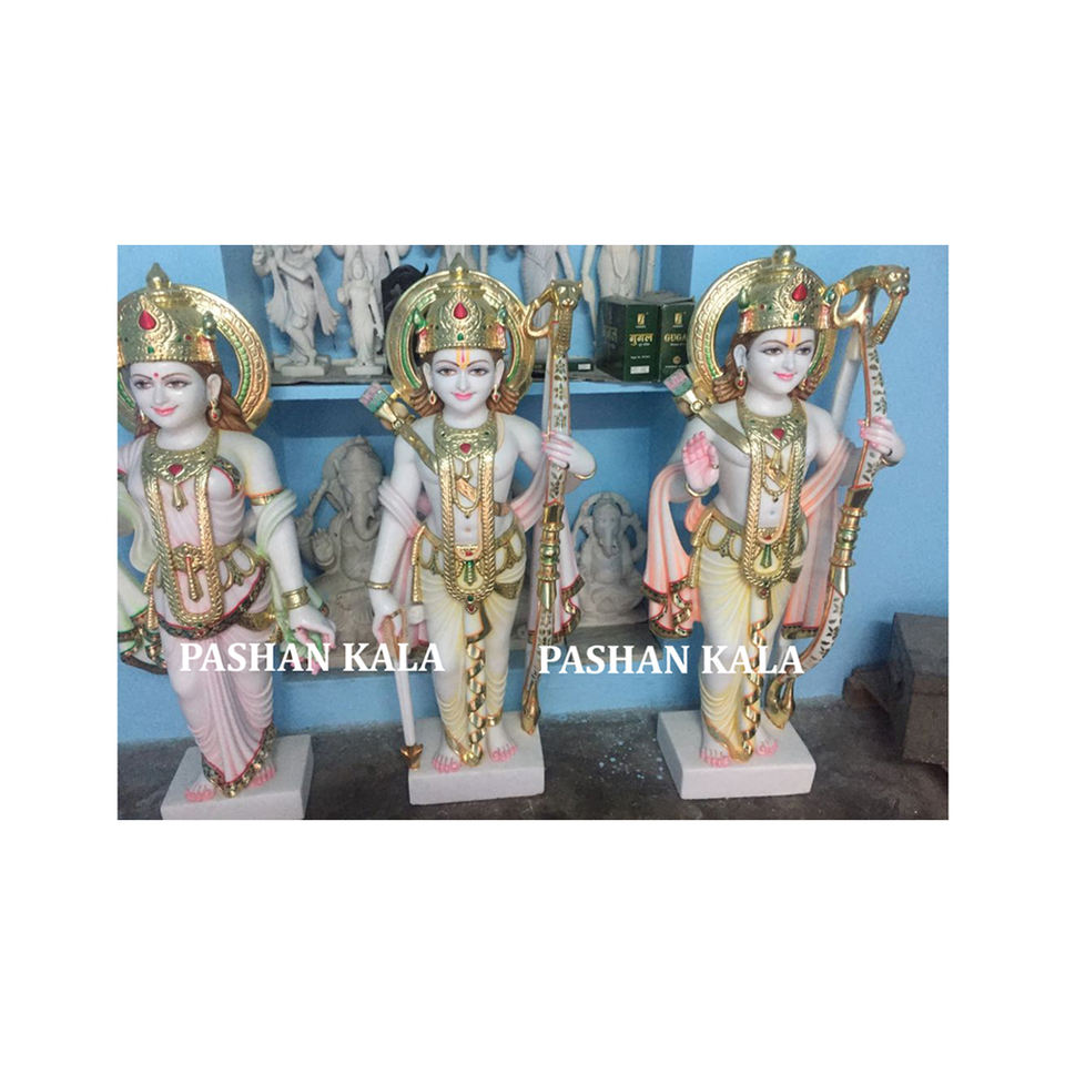 แฮนด์เมดหินอ่อนสีขาวที่สวยงามทาสี Ram Darwar รูปปั้น
