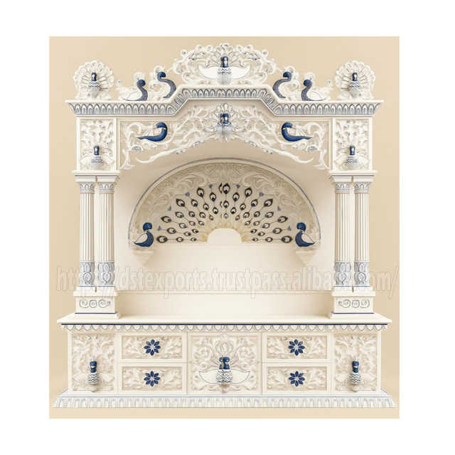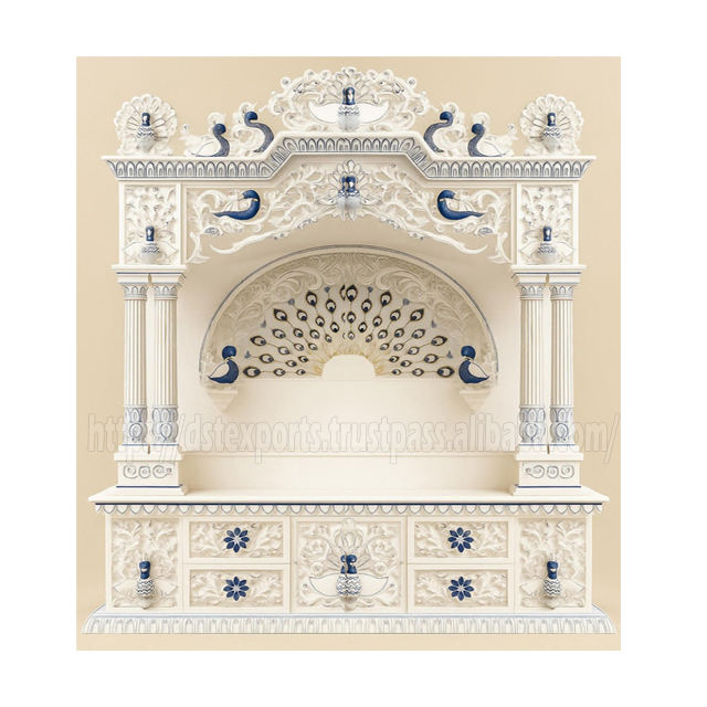 Product name:Handmade White Peacock Design Wooden Pooja Mandir UK