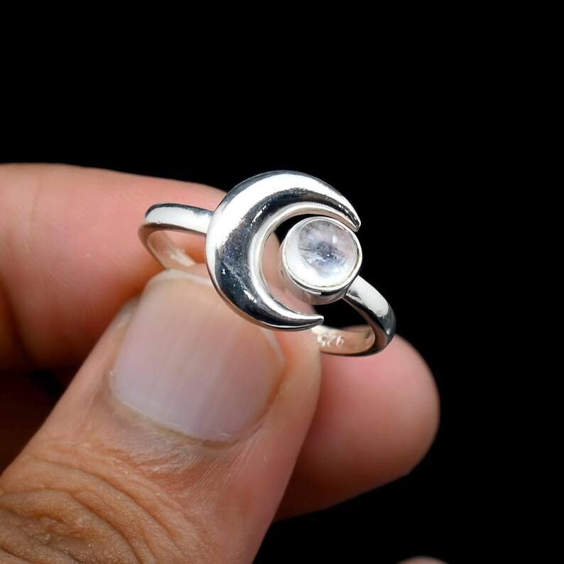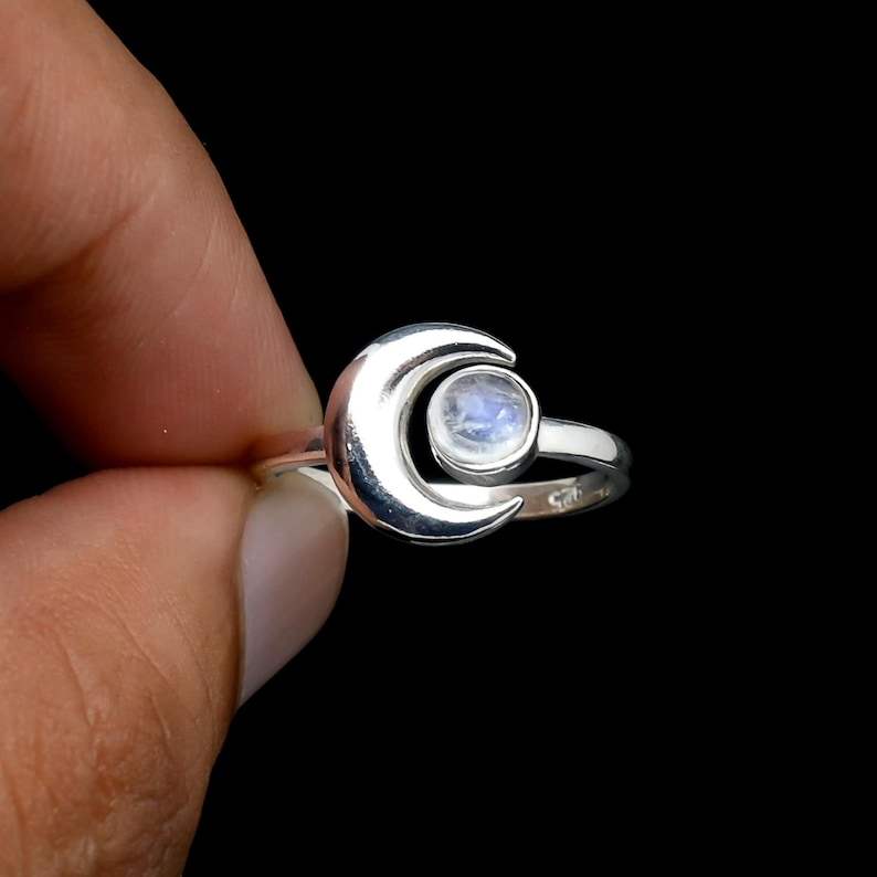 แหวนพลอยมูนสโตนสีรุ้งทำด้วยมือทำด้วยมือสีขาว925ทึบเครื่องประดับอัญมณีทรงหลังเบี้ยหรูหราสำหรับผู้หญิงตัวเลือกของขวัญ