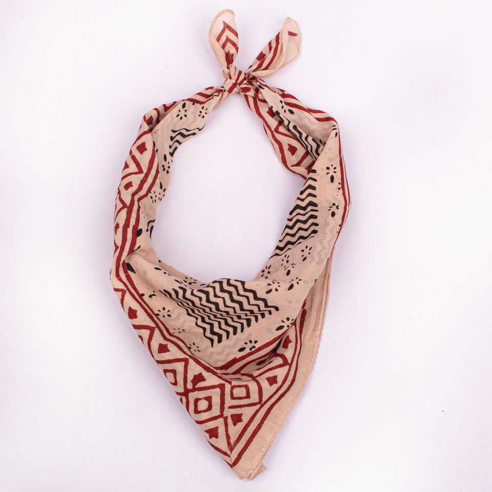 ผ้าพันคอผ้าฝ้ายสี่เหลี่ยมพิมพ์ลายบล็อก ทำมือ ขายส่ง สำหรับผู้หญิง ใช้คลุมศีรษะ คอ หรือเป็นผ้าเช็ดหน้า สไตล์บากรู