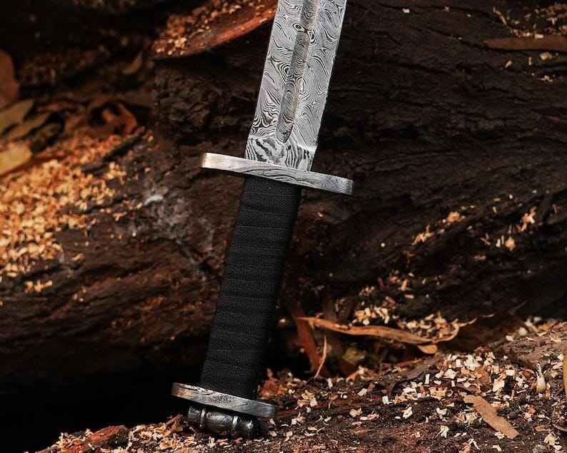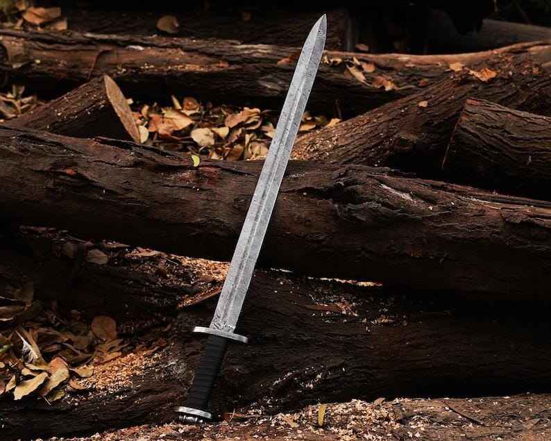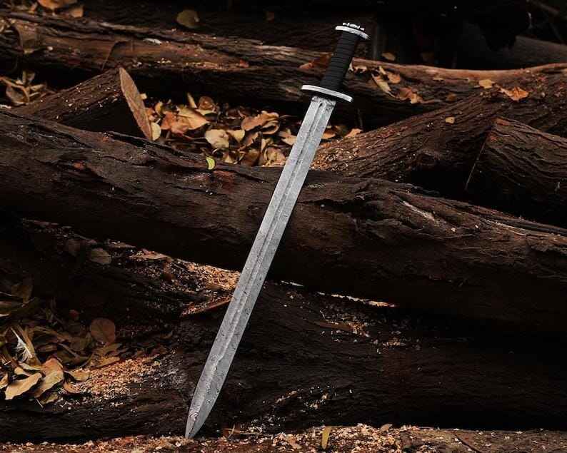 ดาบไวกิ้งเหล็กดามัสกัสทำมือขายส่ง คุณภาพสูง พร้อมปลอกดาบ-ชุดเกราะคอสตูม ดาบสำหรับล่าสัตว์กลางแจ้ง ดาบเอาตัวรอดกลางแจ้ง
