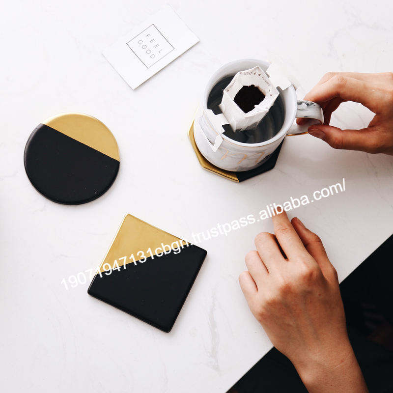 แผ่นรองแก้วหินอ่อนธรรมชาติสีขาวดำ งานแฮนด์เมด ขายส่ง แผ่นรองแก้วสีขาว แผ่นรองแก้วสีดำขาว