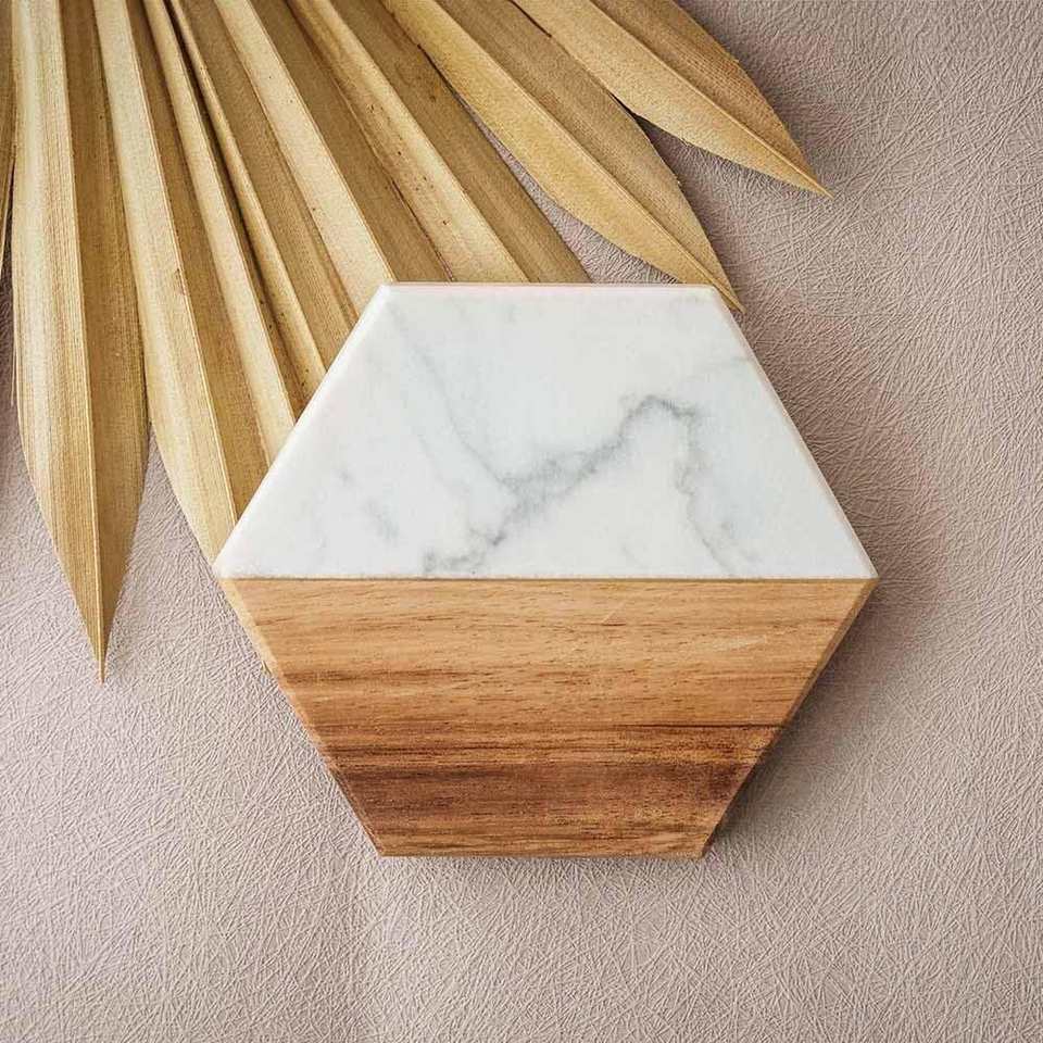 Handmade Wholesale decorative Natural wooden marble coaster wooden coasters white black wooden marble coaster