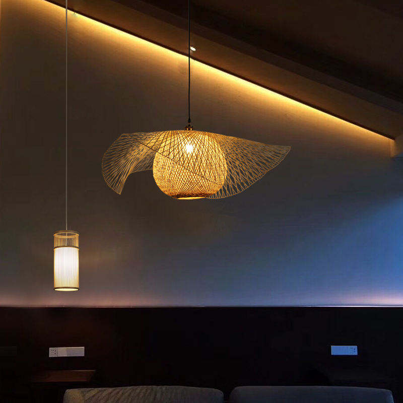 โคมไฟระย้าหวายทำด้วยมือสำหรับร้านอาหารโคมไฟ LED ทำจากไม้ไผ่สาน