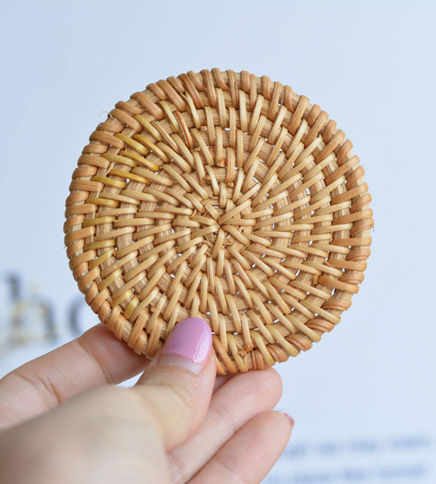 แผ่นรองแก้วหวายสานทำมือ ทนความร้อน ตกแต่งโต๊ะสไตล์คลาสสิก ลายดอกไม้ สำหรับบ้าน ร้านกาแฟ ร้านอาหาร