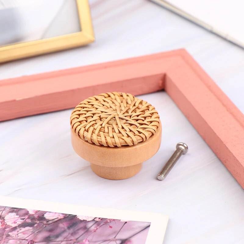 ลูกบิดไม้หวายทำด้วยมือสำหรับห้องครัวลูกบิดตู้หวายลูกบิดประตูอุปกรณ์ล็อค