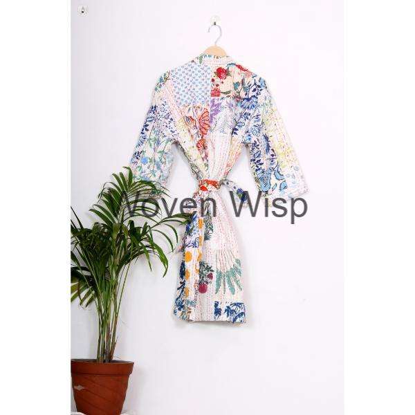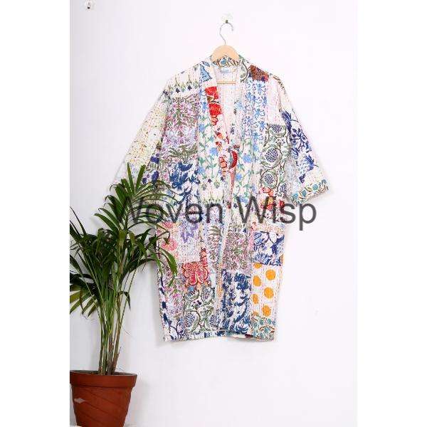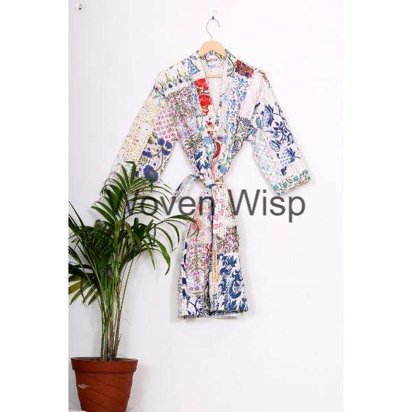 แจ็คเก็ตผ้าฝ้ายอินเดียทำด้วยมือสำหรับทุกเพศผ้าห่มฤดูหนาวผ้าห่มโอเวอร์โค้ทบล็อกนกพิมพ์ลายเข็มขัดยาวผ้าลินิน