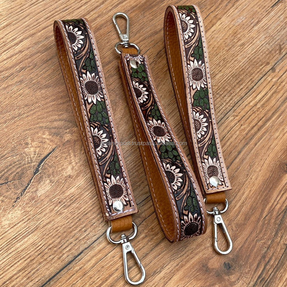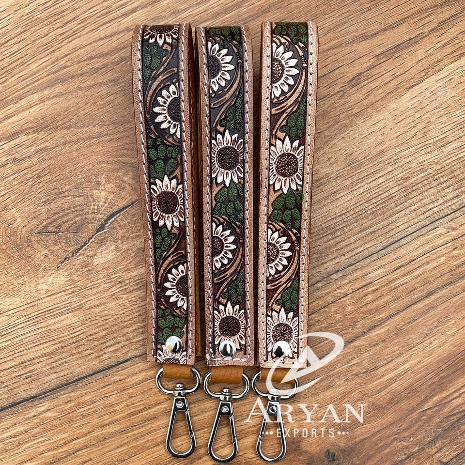 Product Name:Hand Tooled Leather Lanyard Wristlet Keychain