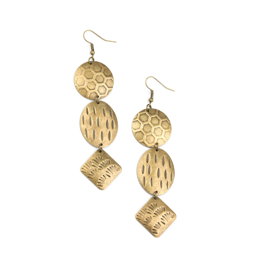 ต่างหูทองเหลืองแฟชั่นทำด้วยมือสำหรับผู้หญิงเครื่องประดับสำหรับงานปาร์ตี้และขายต่างหูทองเหลืองสำหรับผู้หญิงอัญมณีสีทอง