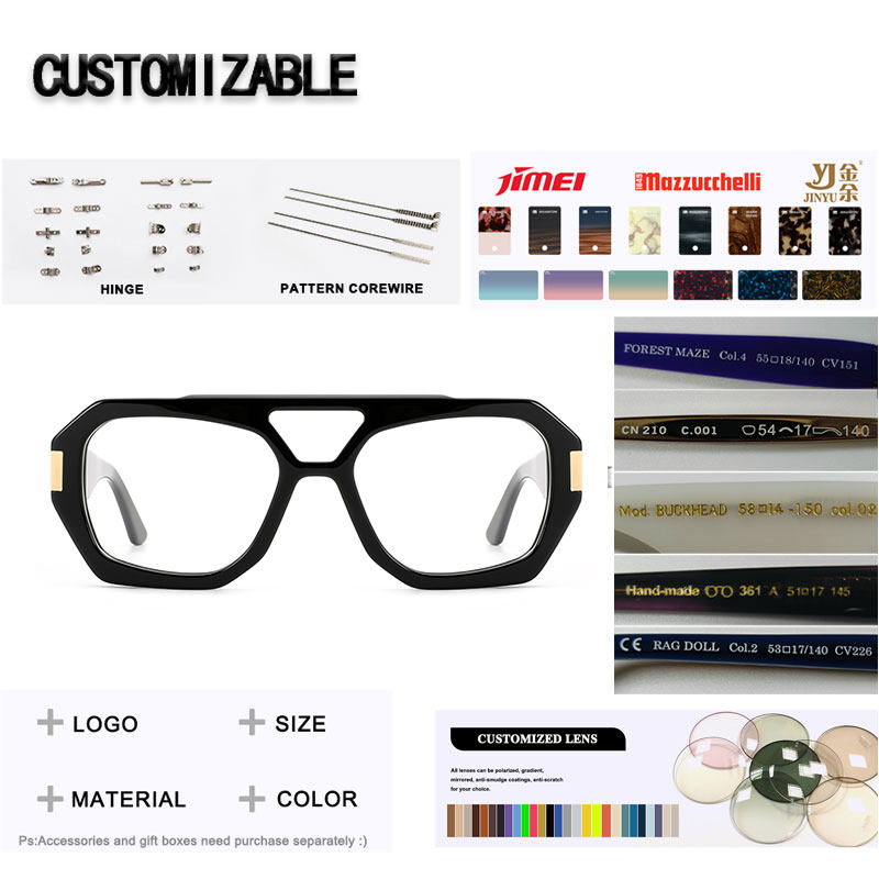 กรอบแว่นตาอะซิเตททำมือสำหรับผู้หญิง ป้องกันแสงสีฟ้า ดีไซน์หรูหราสั่งทำพิเศษ จัดส่งรวดเร็ว ทนทาน แบบเต็มกรอบ