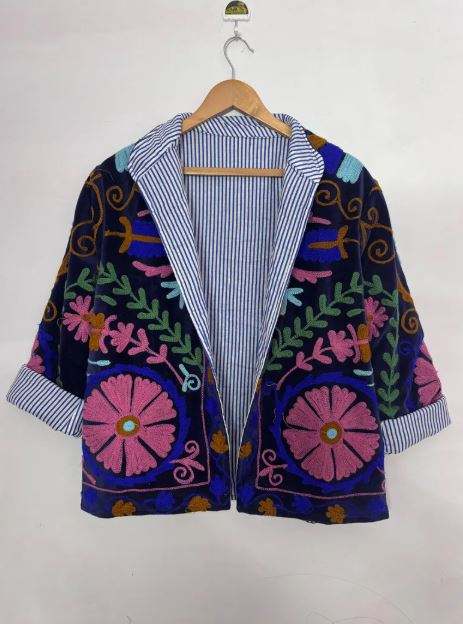 เสื้อแจ็คเก็ตผ้าฝ้ายปักลายสไตล์โบโฮสำหรับผู้หญิง ทำมือ เหมาะสำหรับฤดูหนาว แบบยาวหรือแบบสั้น ใช้เป็นเสื้อคลุมหรือเสื้อคลุมตัวนอก ตกแต่งสวยงาม