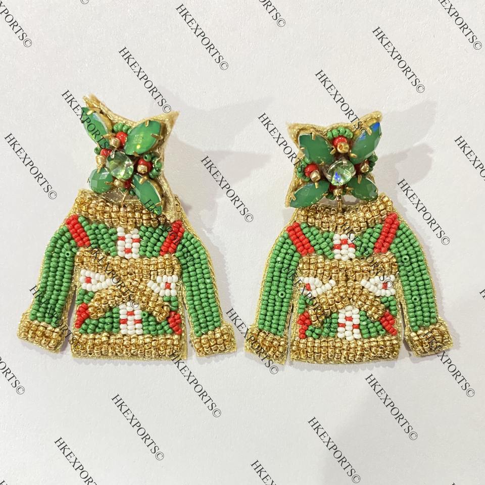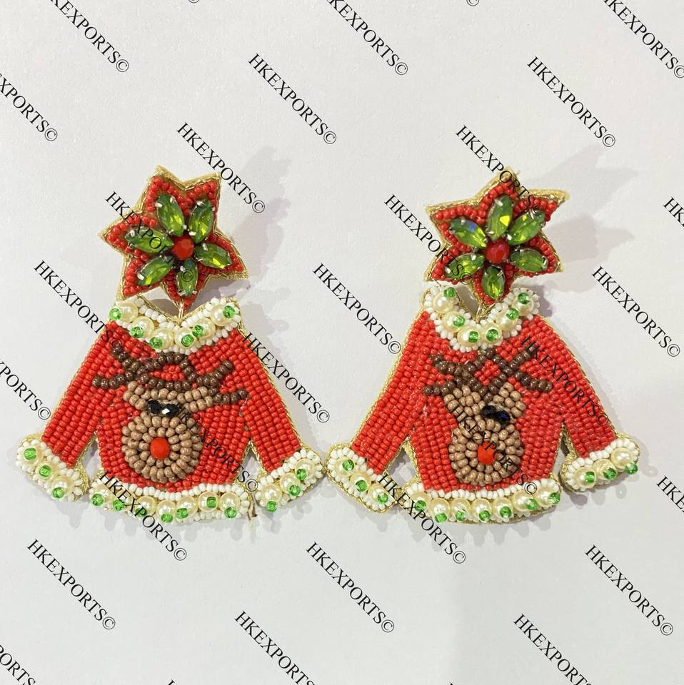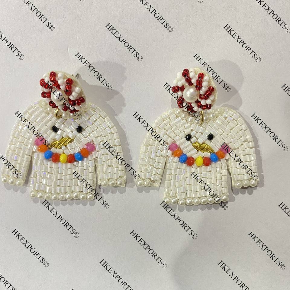 ต่างหูลูกปัดชุบทองสำหรับเทศกาลคริสต์มาสของผู้หญิงทำด้วยมือต่างหูแฟชั่นห่วงรูปตุ๊กตาหิมะซานต้า