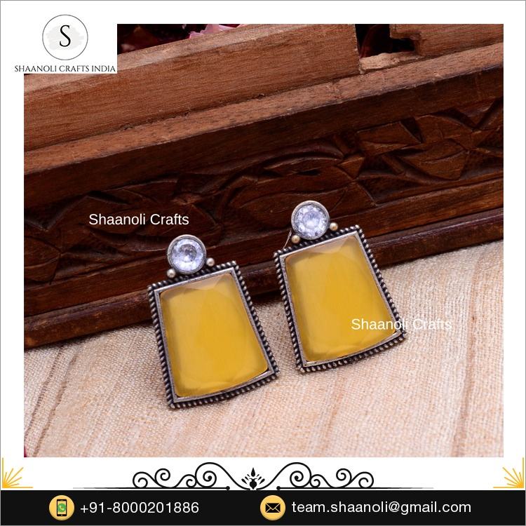 ต่างหูห้อยของผู้หญิงทำด้วยมือสีเหลืองดีไซน์สวยเงินชุบด้วยไข่มุกเพชรออกซิไดซ์ของขวัญแต่งงาน