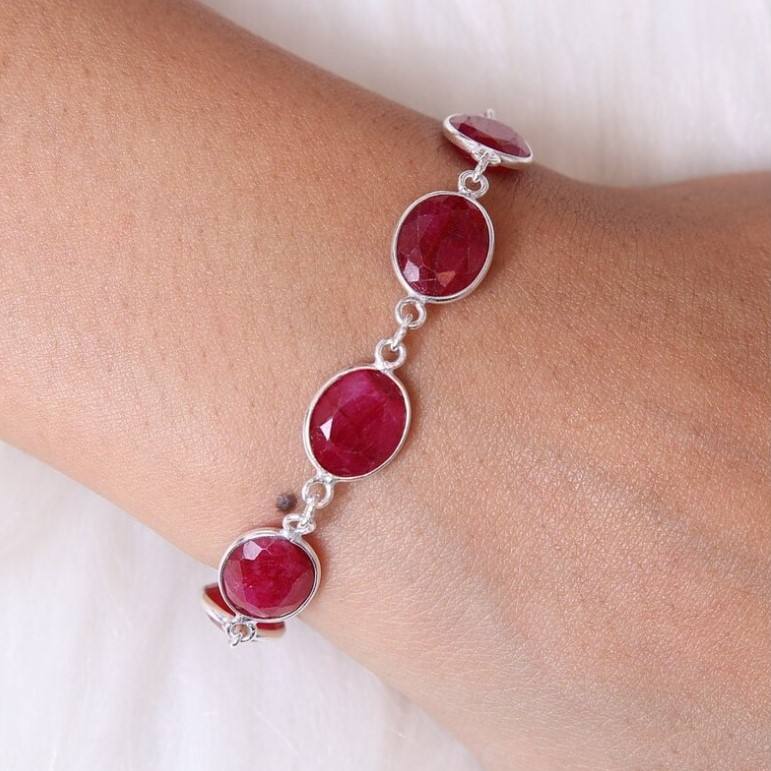 ชื่อสินค้า:สร้อยข้อมือเงินประดับพลอยทับทิมเจียระไนธรรมชาติ