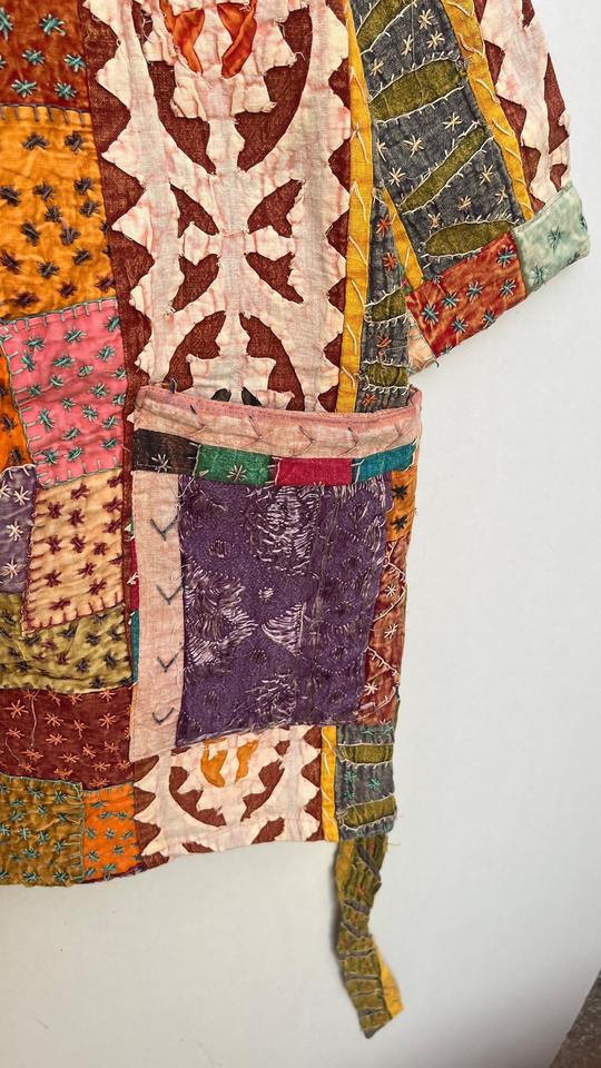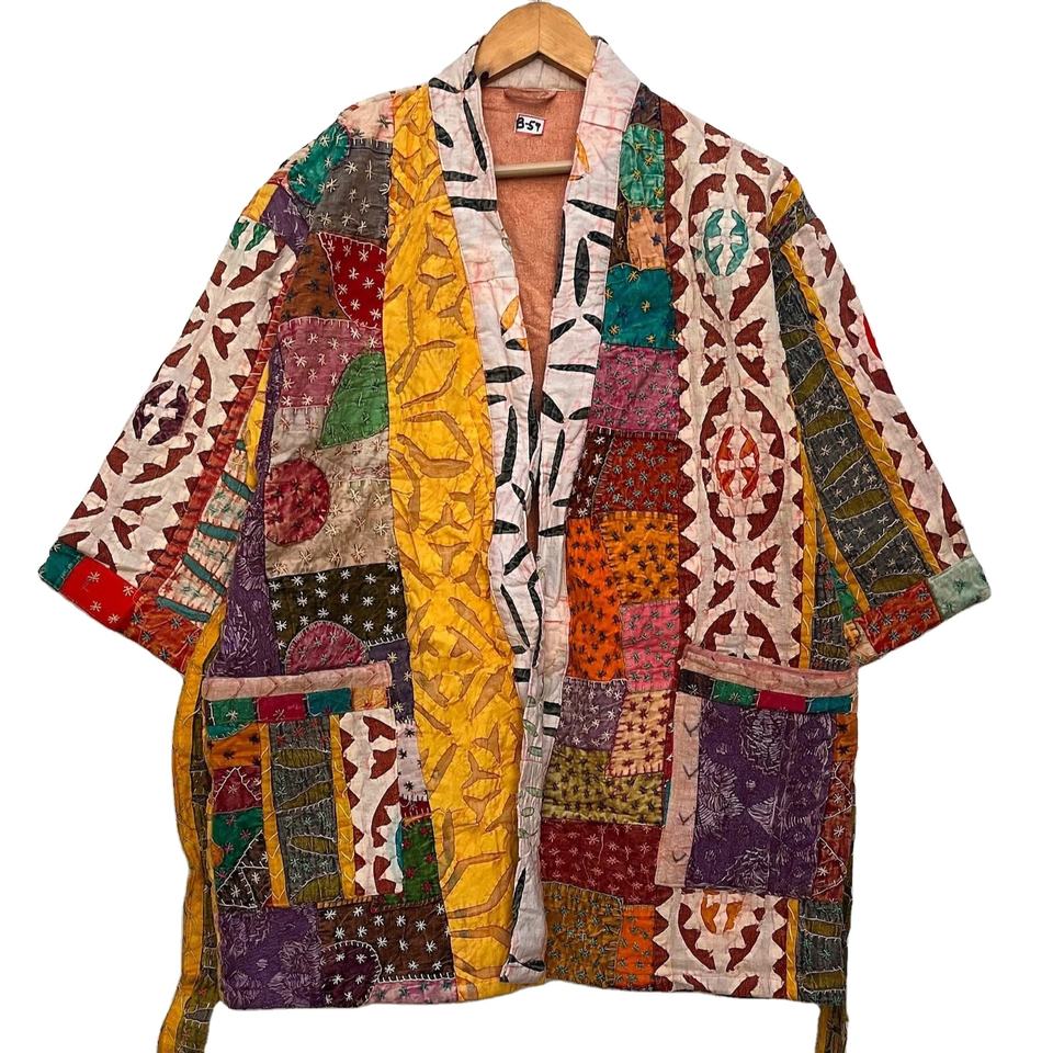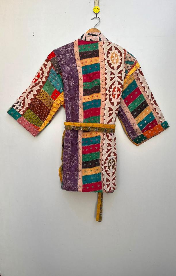 เสื้อแจ็กเก็ต Kantha ของผู้หญิงทำมือเสื้อคลุมกิโมโนผ้าใบตัดลายของขวัญคริสต์มาส