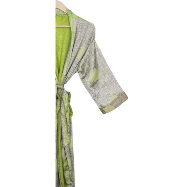ชุดกิโมโนผ้าไหมปะติดปะต่อทำมือสำหรับผู้หญิง ลายดอกไม้ สไตล์อินเดีย ระบายอากาศได้ดี เหมาะสำหรับฤดูร้อนและฤดูใบไม้ผลิ ใช้เป็นชุดนอนหรือชุดคลุมอาบน้ำได้