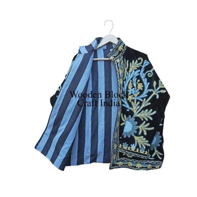 เสื้อแจ็คเก็ตผู้หญิงทรงสั้นเข้ารูปสำหรับฤดูใบไม้ร่วง งานแฮนด์เมด ลายปักดอกซูซานี ผ้าถักเนื้อฟลีซ บุด้วยผ้าฝ้ายแบบควิลท์ สินค้าใหม่
