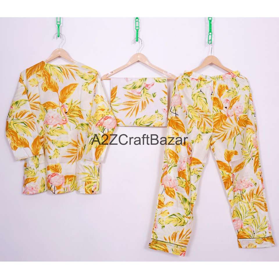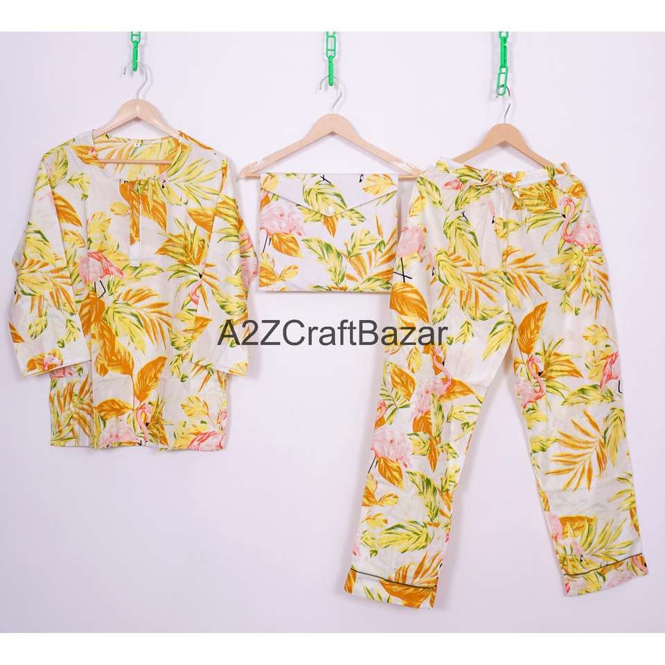 ชุดนอนผ้าฝ้ายพิมพ์ลายดอกไม้สำหรับผู้หญิง ทำด้วยมือ 100% เอวยางยืดนุ่ม แขนยาว เหมาะเป็นของขวัญเพื่อนเจ้าสาว