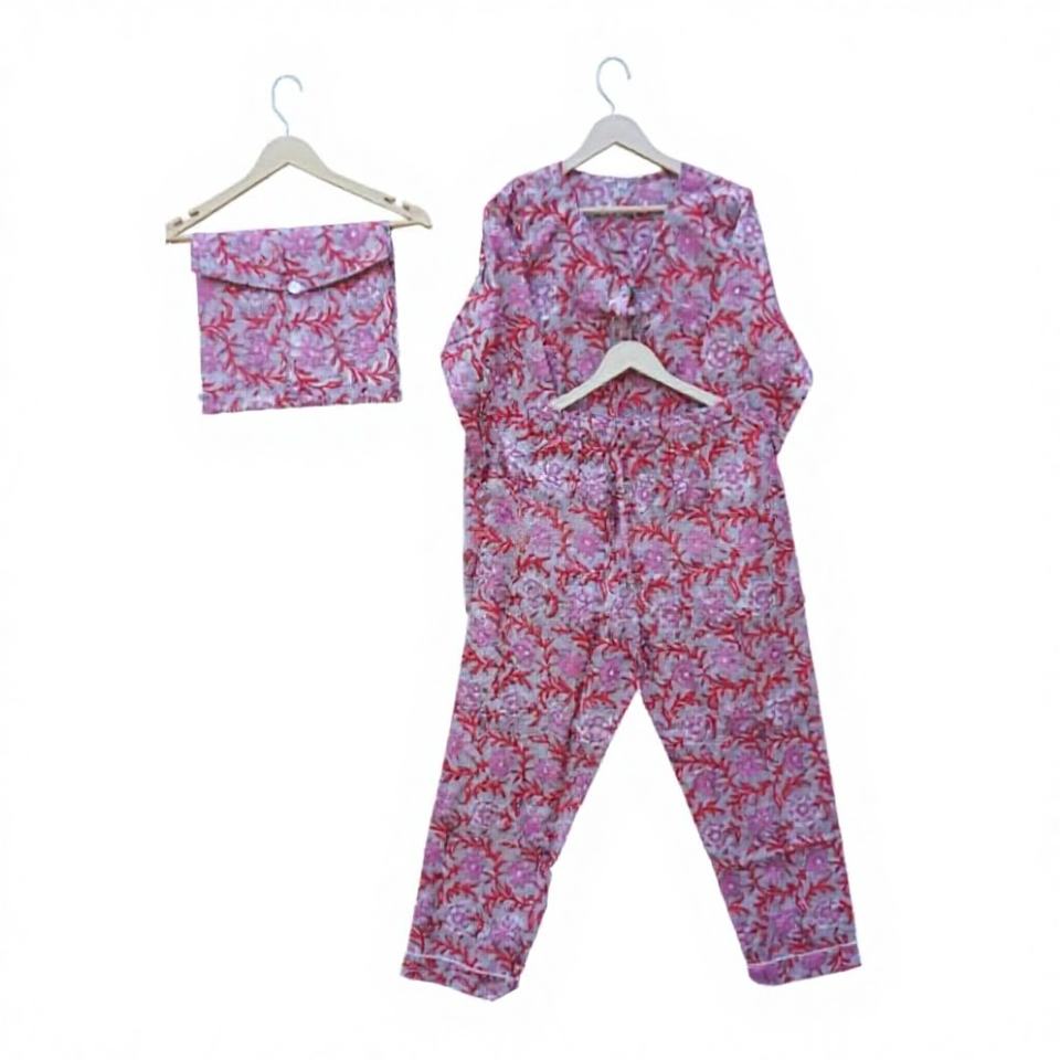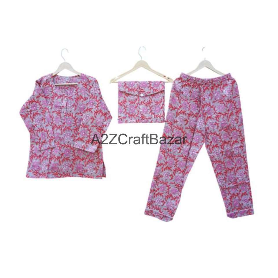 ชุดนอนผ้าฝ้ายพิมพ์ลายดอกไม้หรูหราสำหรับผู้หญิง ทำมือ 100% ระบายอากาศได้ดี นุ่มสบาย ชุดนอนสำหรับฤดูหนาว ของขวัญสำหรับเพื่อนเจ้าสาว