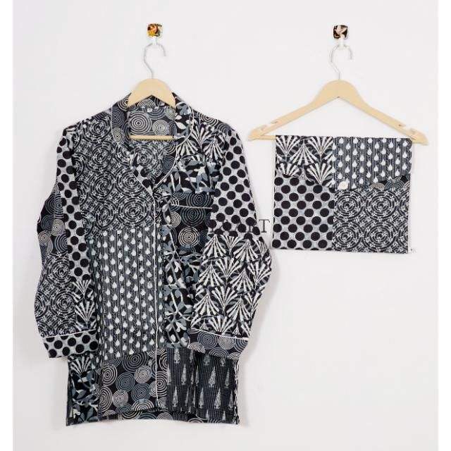 Handmade Elegant Women's Black Indian Cotton Sleepwear Set Casual Floral Printed Pajamas Shirt Artisan Crafted Night Dress Quick