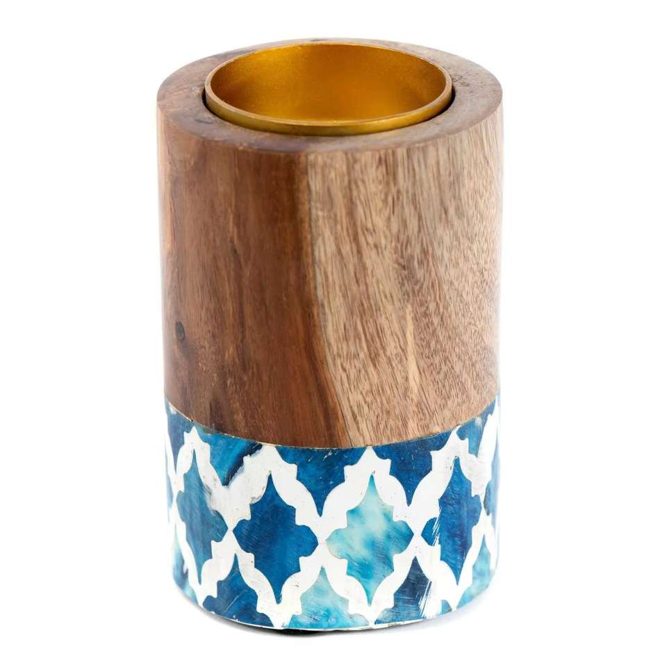 เชิงเทียนไม้ทำด้วยมือพร้อมด้วยสลักกระดูกที่มีสไตล์สำหรับตกแต่งที่ฝังบนเชิงเทียนสำหรับเทศกาลคริสต์มาสและเทศกาลอีสเตอร์