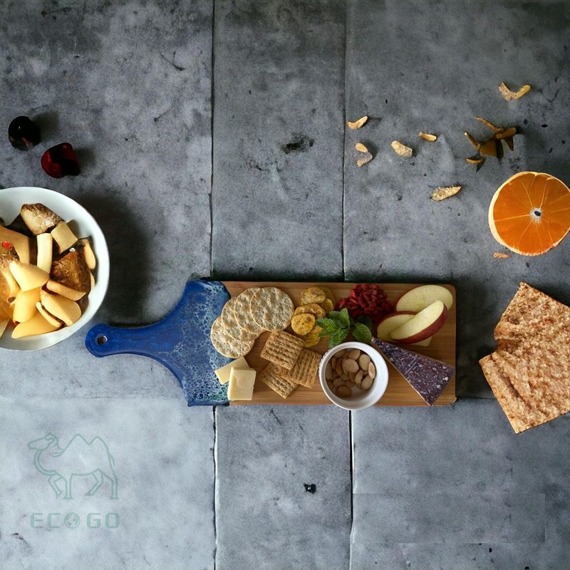เขียงไม้ทำด้วยมือพร้อมเรซินอีพ็อกซี่เรซิ่นแผ่นชีสถาดเสิร์ฟปาร์ตี้เขียงหั่นขนมหวานชีส