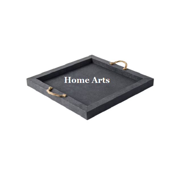 ถาดไม้ใส่อาหารทำด้วยมือพร้อมด้ามจับสแตนเลสถาดขนมสีดำ