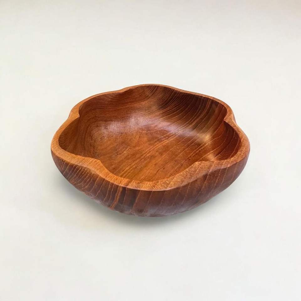 ชามไม้ทำด้วยมือโดยช่างฝีมือที่มีทักษะเหมาะสำหรับเสิร์ฟถั่ววันที่สดและผลไม้แห้ง