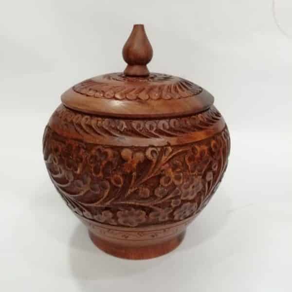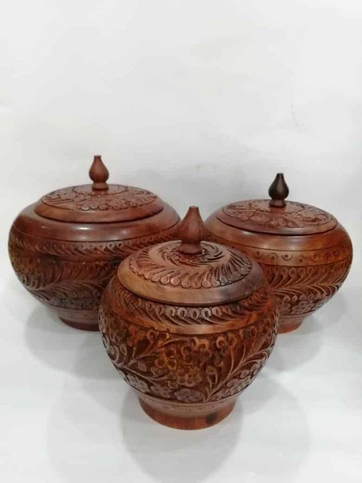 โหลลูกกวาดแกะสลักไม้ทำด้วยมือ,แจกันทรงขวดไม้โรสวู้ดแกะสลักด้วยมือขวดโหลขนมแกะสลักของตกแต่งทำจากไม้ Chiniot