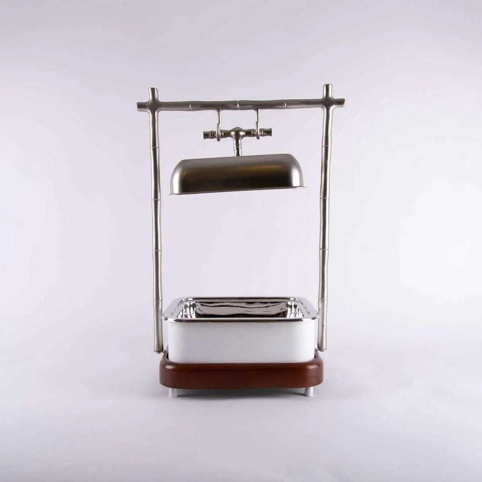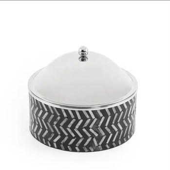 หม้อไม้ทำด้วยมือพร้อมฝาโลหะสีทองหรูหราเหมาะสำหรับเก็บอาหารให้ความอบอุ่นในงานแต่งงานและบุฟเฟ่ต์ในโรงแรม