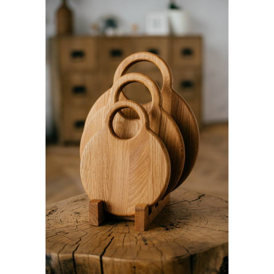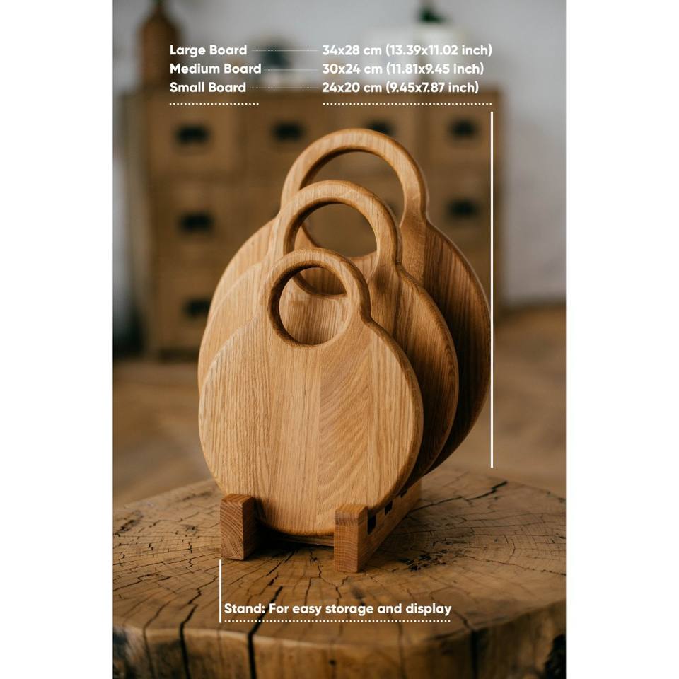 ชุดเขียงไม้ทำมือรักษ์โลก 3 ชิ้น พร้อมที่วาง ล้างในเครื่องล้างจานได้ กันลื่น น้ำหนักเบา ดีไซน์หรูหราทันสมัย