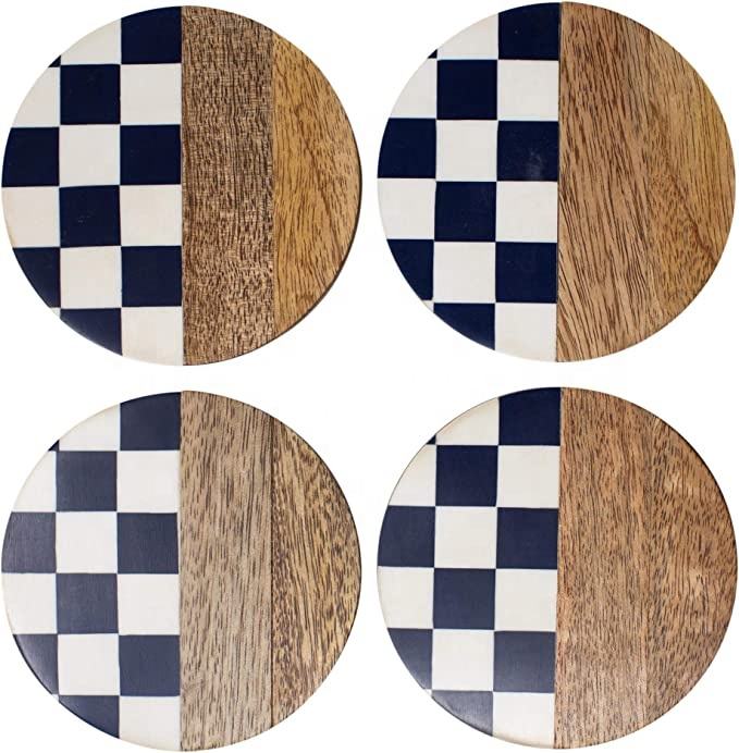 AMGE Handmade Classic Wooden Resin Non-Slip Eco-Friendly Luxury Coffee Tea Coasters High Standard Quality Customizable Packaging