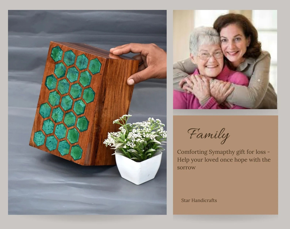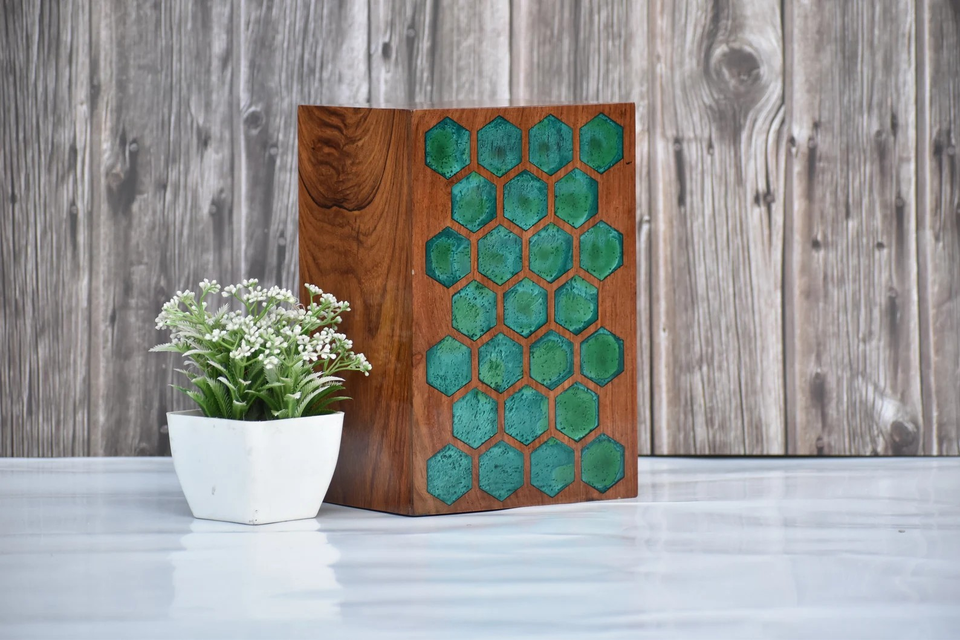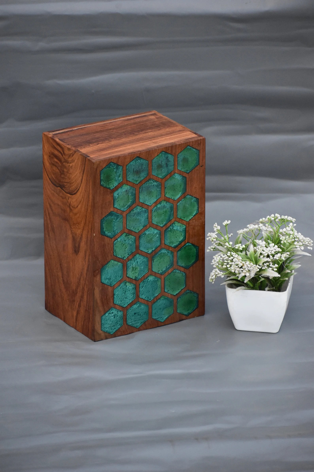 กล่องไม้แกะสลักอีพ็อกซี่ฝังอีพ็อกซี่สีเขียวกล่องอนุสรณ์ส่วนบุคคลสำหรับขี้เถ้า