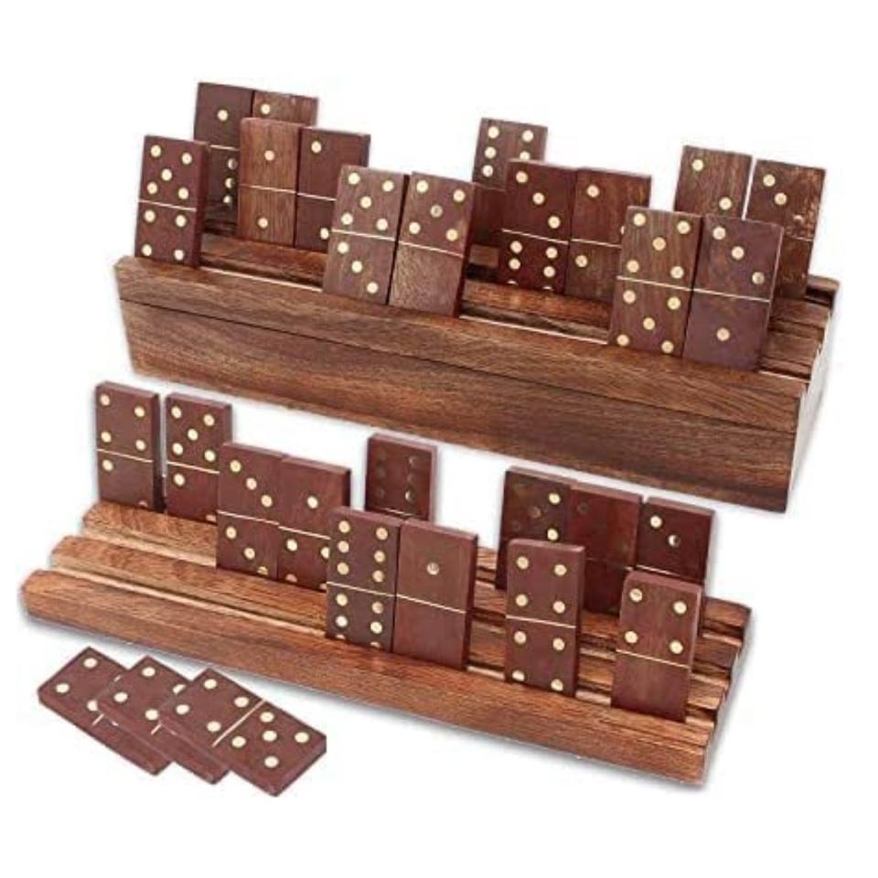 ชุดเกมโดมิโนไม้ทำมือ พร้อมลูกเต๋าและไพ่ กล่องเก็บไม้พะยูงสุดหรู เกมกระดานสำหรับครอบครัวระดับพรีเมียม ชุดของขวัญสไตล์วินเทจ