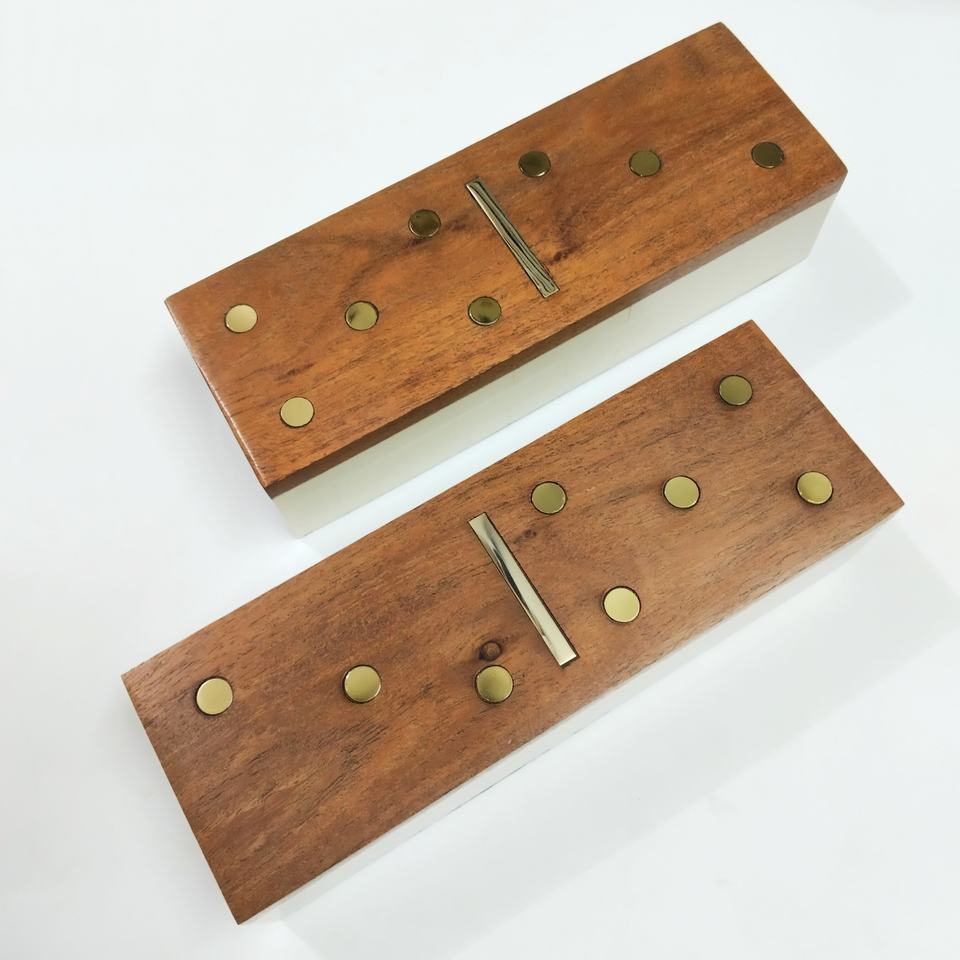 ชุดโดมิโนไม้ทำมือ พร้อมฝาปิดลายทองเหลือง และกล่องเก็บ ชุดกระดานโดมิโนพร้อมกล่องเก็บเรซิ่น