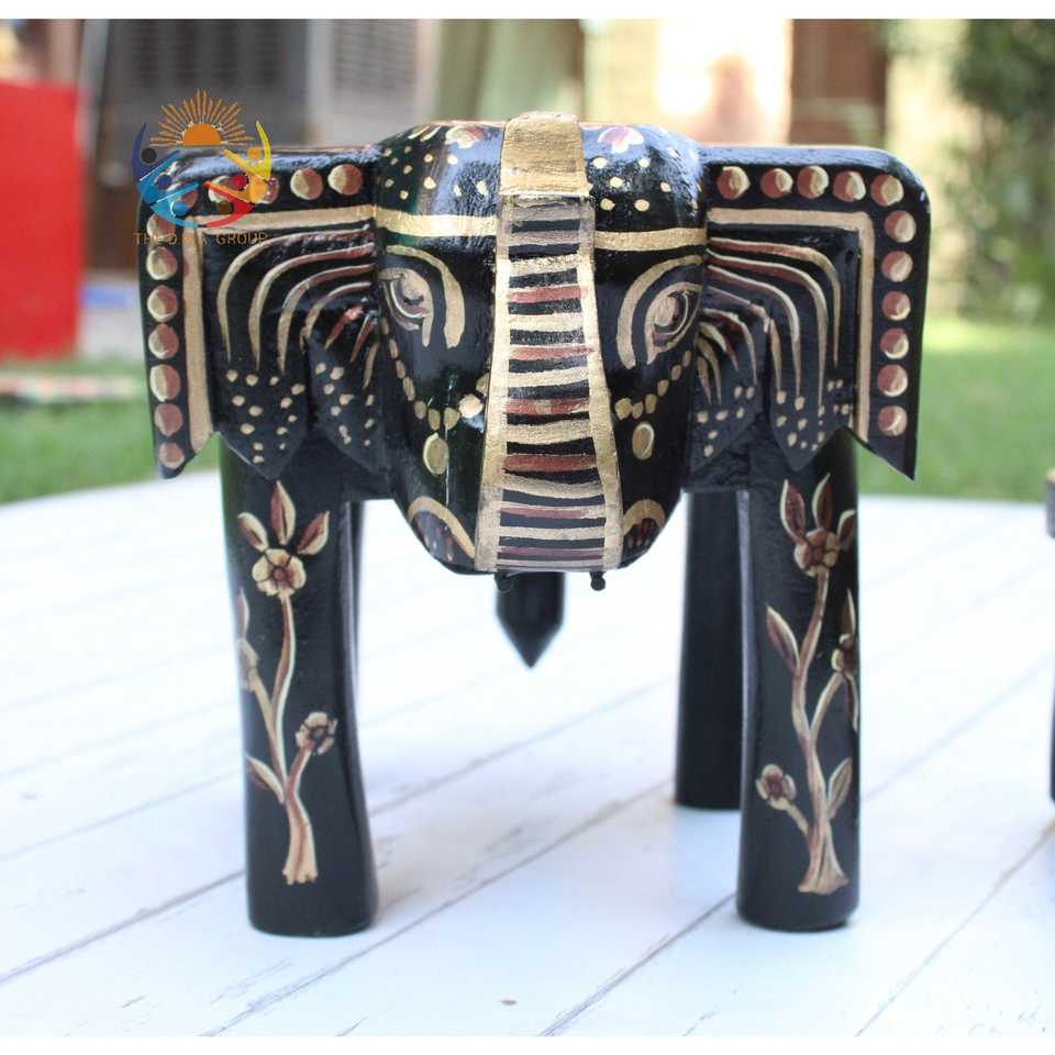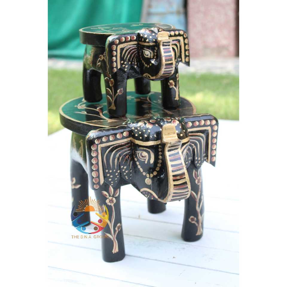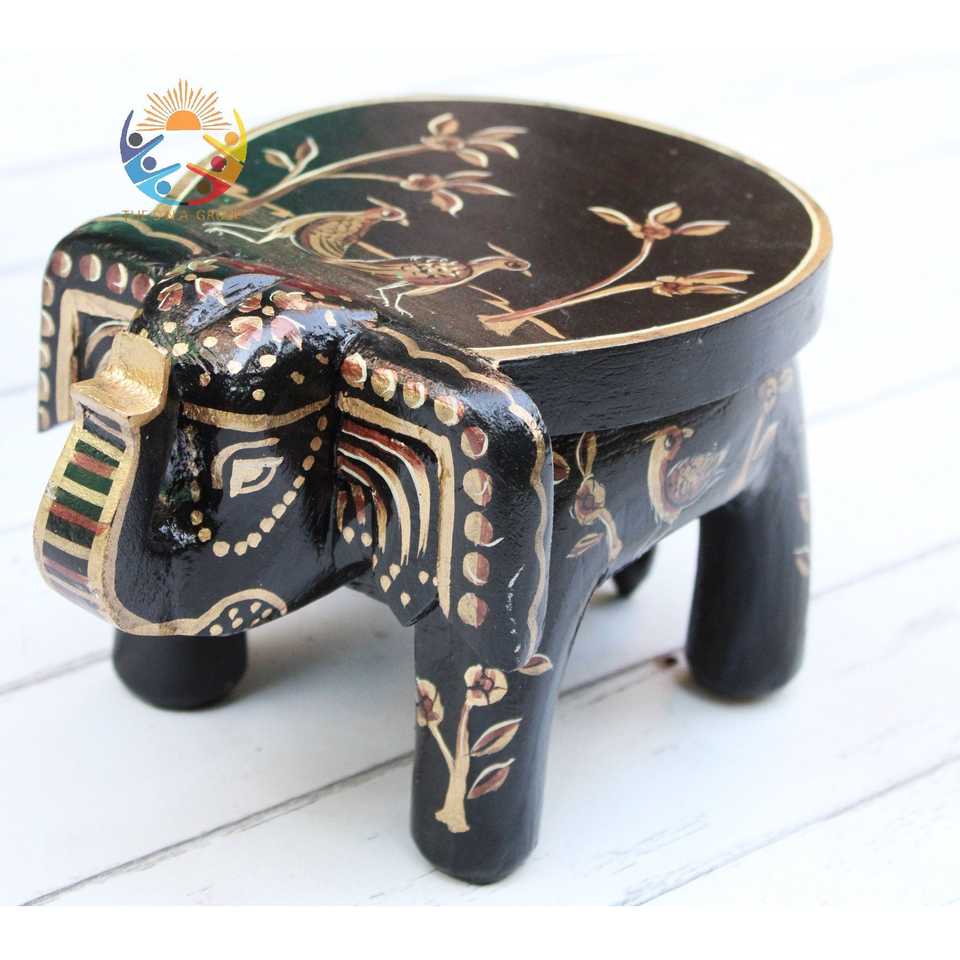 ม้านั่งไม้รูปช้างทำด้วยมือตกแต่งด้วยร้านขายงานฝีมืออินเดีย