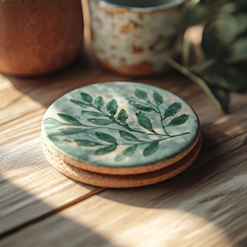 ชุดจานรองแก้วไม้เคลือบลายใบไม้ ทำมือ จำนวน 4 ชิ้น ทรงกลม สำหรับตกแต่งโต๊ะกาแฟ เป็นมิตรกับสิ่งแวดล้อม เหมาะสำหรับเป็นของขวัญ