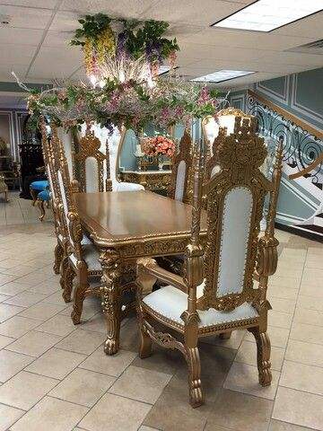 ชุดโต๊ะอาหารและเก้าอี้ไม้หรูหราทำด้วยมือมีรายละเอียดทางศิลปะเหมาะสำหรับการตกแต่งภายในบ้านที่ทันสมัย