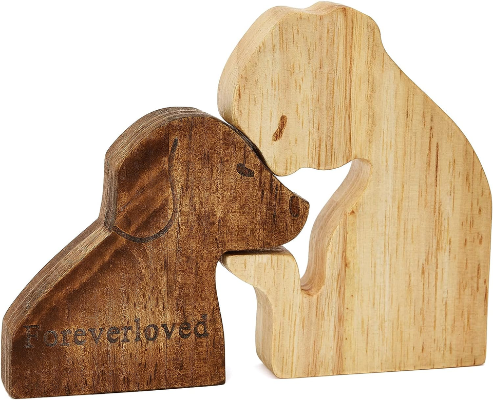 Handmade Wooden Man and Dog Figurines Dogs Statue Home Decor Christmas Shelf Decor