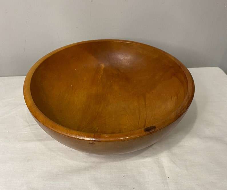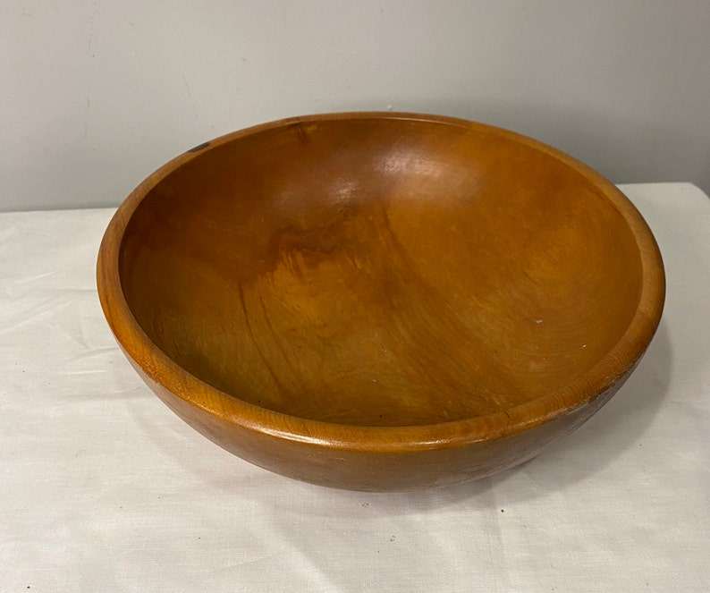 Handmade Wooden Midcentury Bowl Polished Rustic Home Decor Table Centerpiece Kitchen Serving