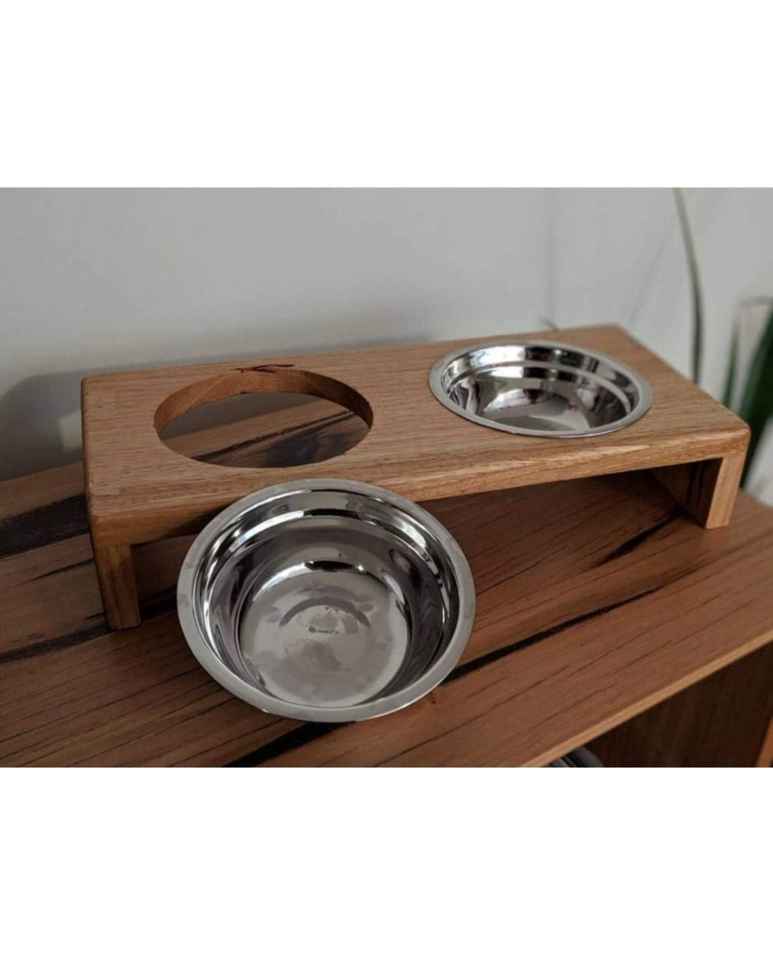 ชามไม้อะคาเซียสำหรับให้สุนัขแมวยกสูง1600มล. ชามคู่ขัดเงาดีไซน์สัตว์อย่างมีสไตล์เป็นมิตรต่อสิ่งแวดล้อมทำด้วยมือ