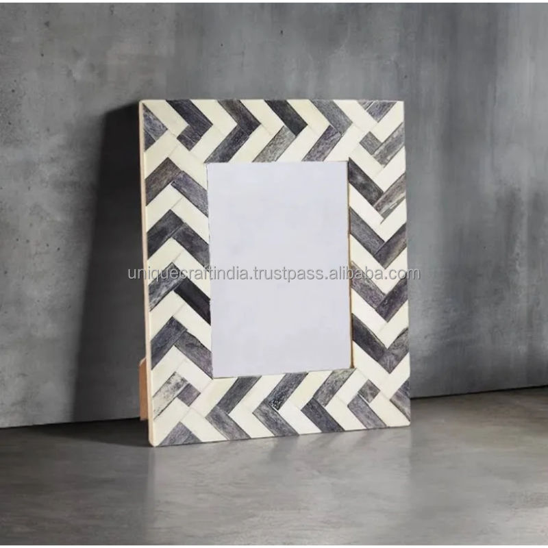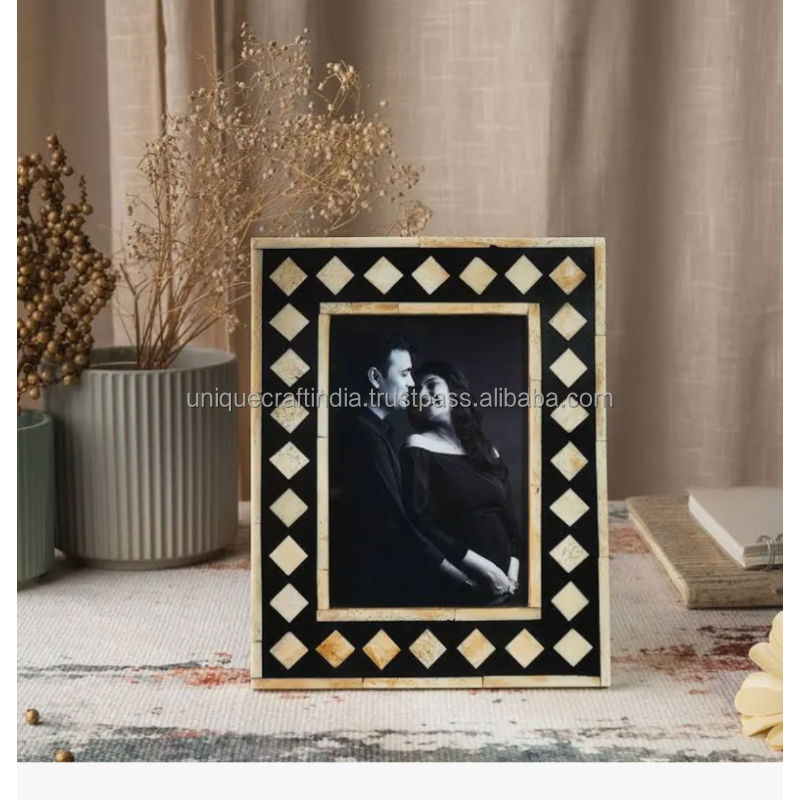 กรอบรูปไม้ทำมือพร้อมลวดลายกระเบื้องเรขาคณิตหลากสี ของตกแต่งบ้านสำหรับวางบนโต๊ะ
