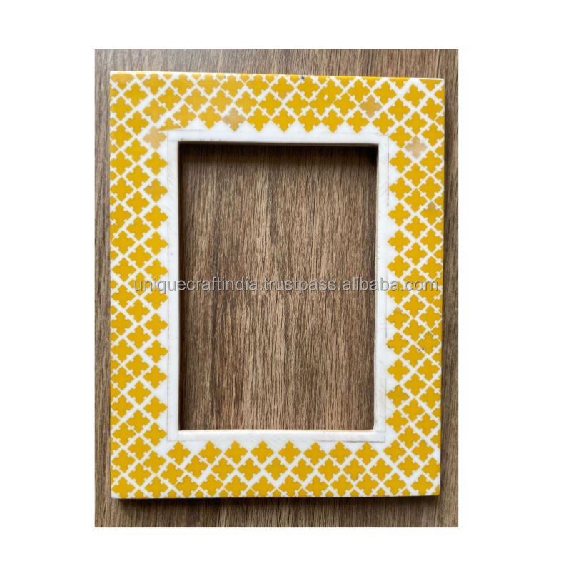 กรอบรูปไม้ทำมือพร้อมงานศิลปะเรซิ่นลายโมร็อกโกสีเหลือง ของตกแต่งบ้านสไตล์คลาสสิก
